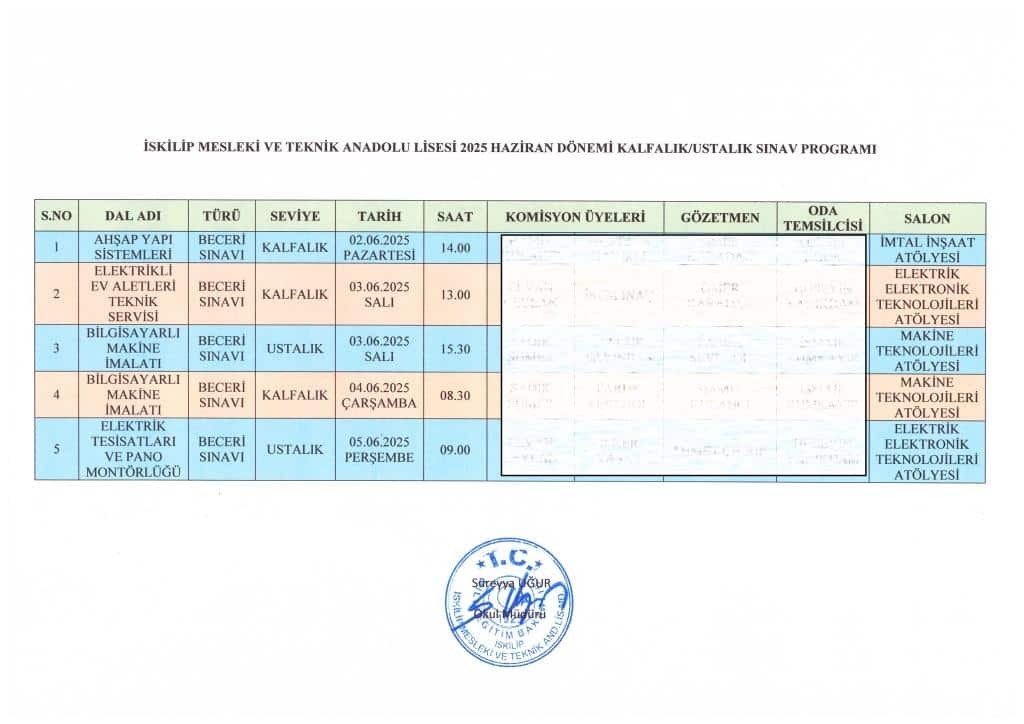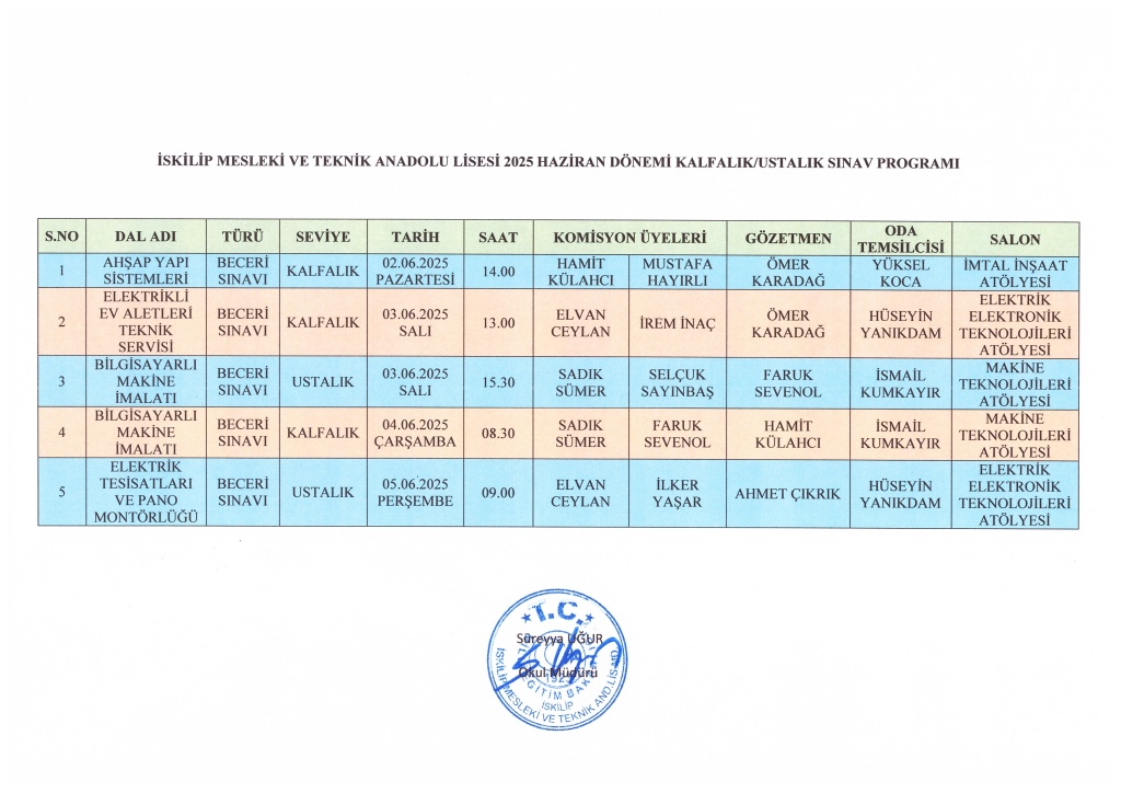2025 Haziran Dönemi Kalfalık / Ustalık Sınav Tarihleri
